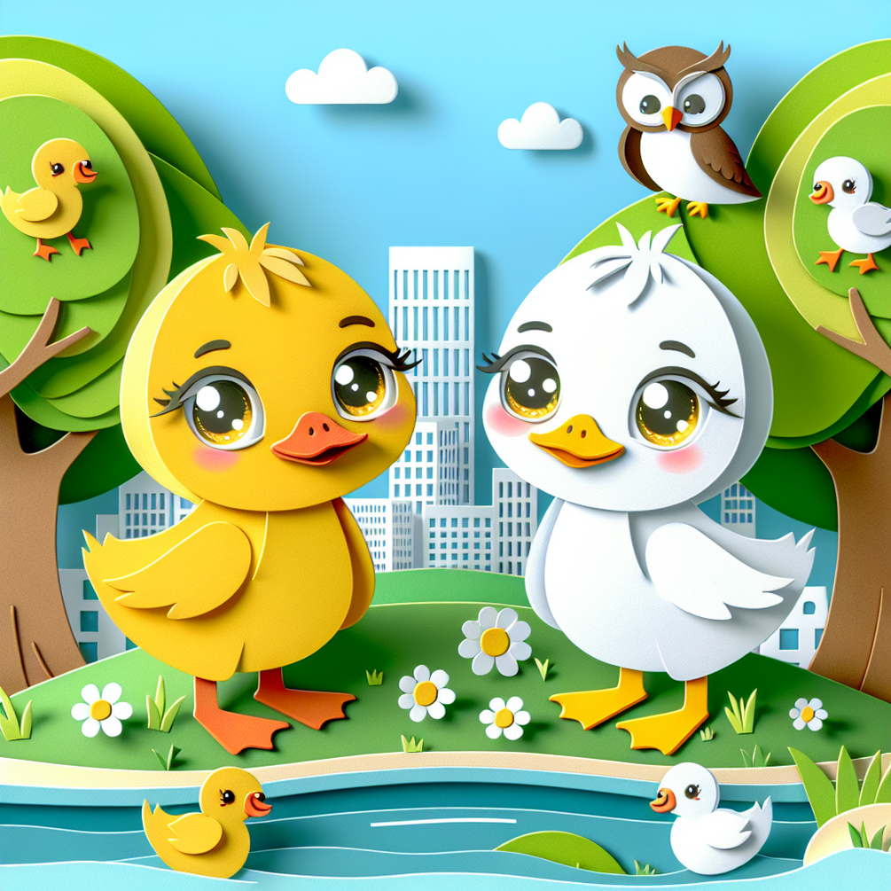 In ancient times, there were two little beauty ducks who lived near a lake in a quiet city. They were friendly birds and loved to make friends with other animals and birds around the lake.